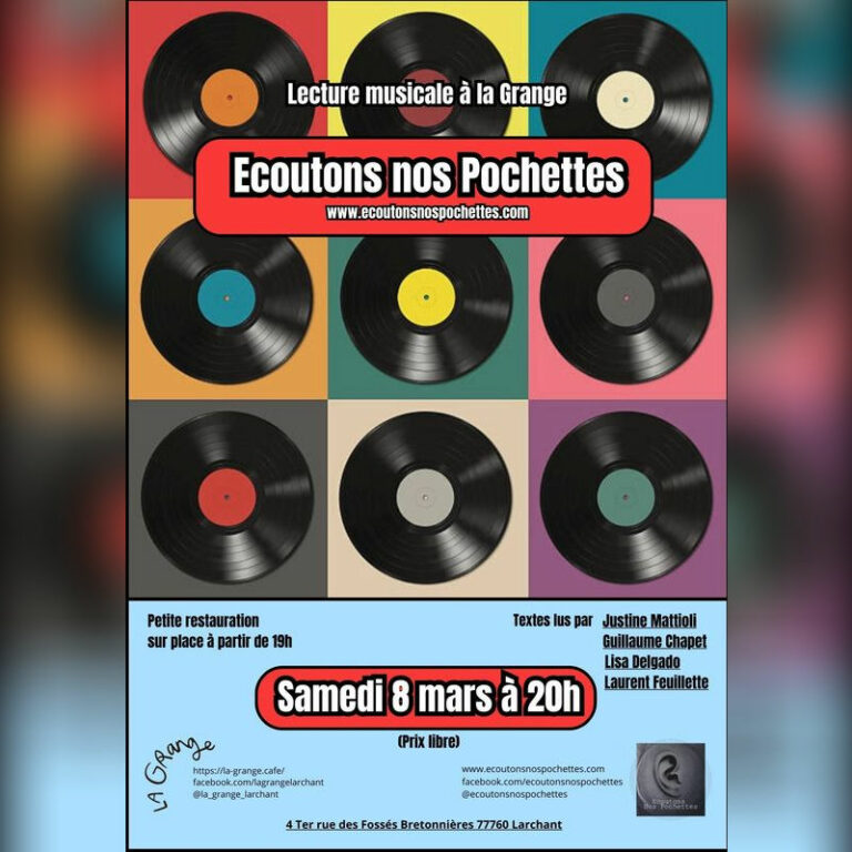 Nous avons tous tissé un lien intime avec une musique, une chanson, un album. Ecoutons nos Pochettes nous propose une lecture de textes forts, drôles et émouvants, évoquant le moment si particulier où une musique a percuté notre existence à jamais. Avec Justine Mattiolo, Guillaume Chapet, Lisa Delgado et laurent Feuillette.